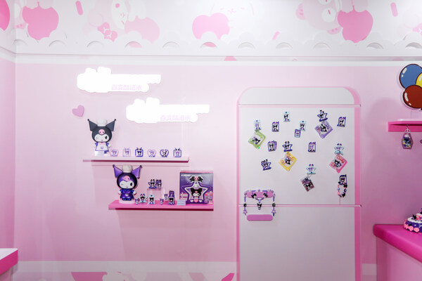 走进三丽鸥嗨翻节布鲁可展位,仿佛走进了一个梦幻小女生的家——粉色铺满整个空间,甜美少女氛围在灯光与布景间悄然蔓延。布鲁可嗒豆产品自然地融入在书桌、化妆台、餐边柜、冰箱等各个角落,吸附在冰箱门上的则是6月刚刚上市的布鲁可嗒豆FUN系列「百变酷洛米Ⅰ」,通过嗒豆公仔+磁吸舞台的灵活组合、自由拼搭,就能轻松变身为家居装饰小物件。